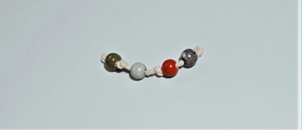 Then the holes weren't big enough and it took a long time to get the cord worked through the beads. I used a combination of hot gluing the end into a tip and then trimming that so I could yank it through. Again, that pesky cameraman didn't get any pictures of that. Honestly, it was a bit of a mess. Once I got that working I just threaded all the beads on in the order I wanted them to be in for both handles.