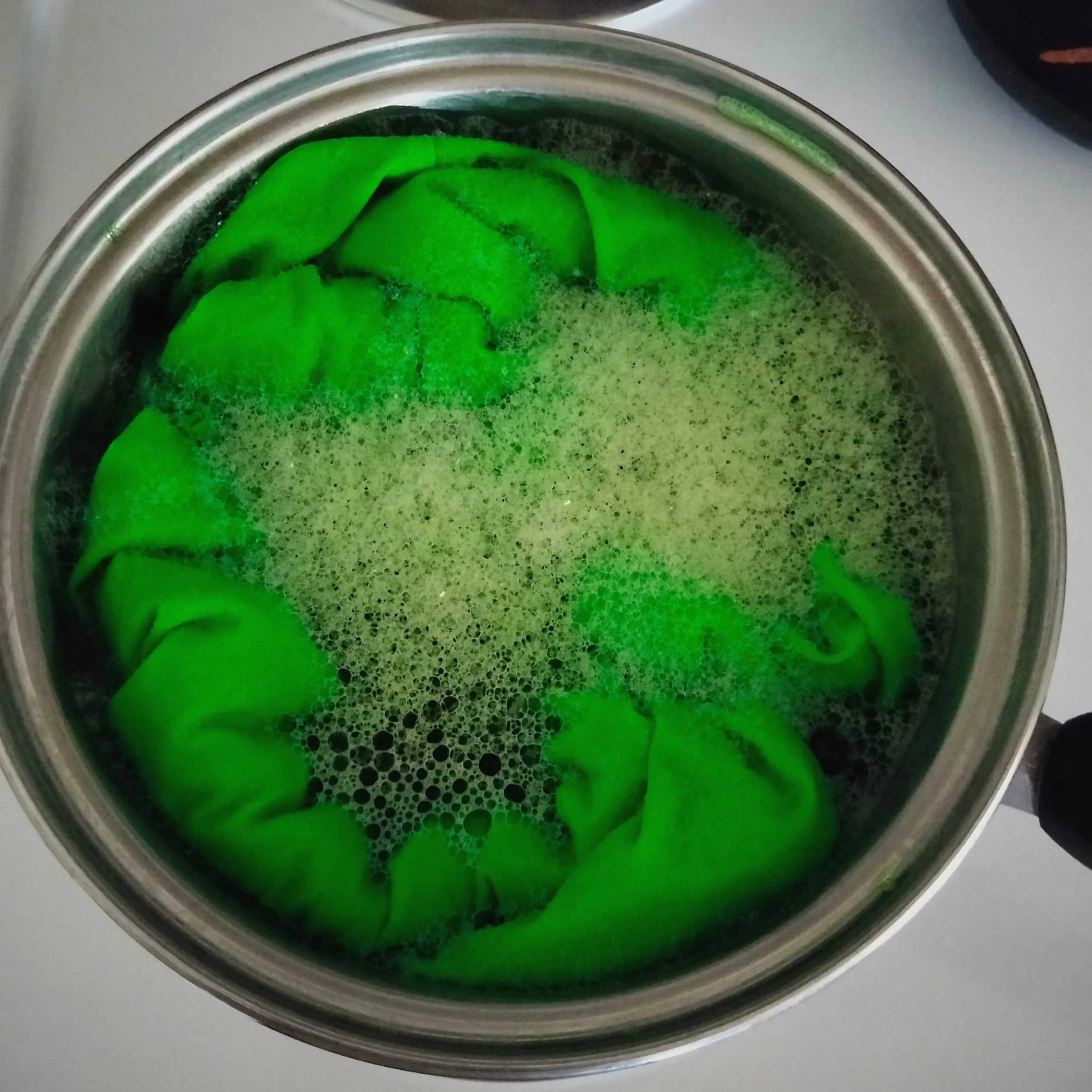 I didn’t find anything neon enough there to suit me so I got this green shirt and decided to dye it neon green.